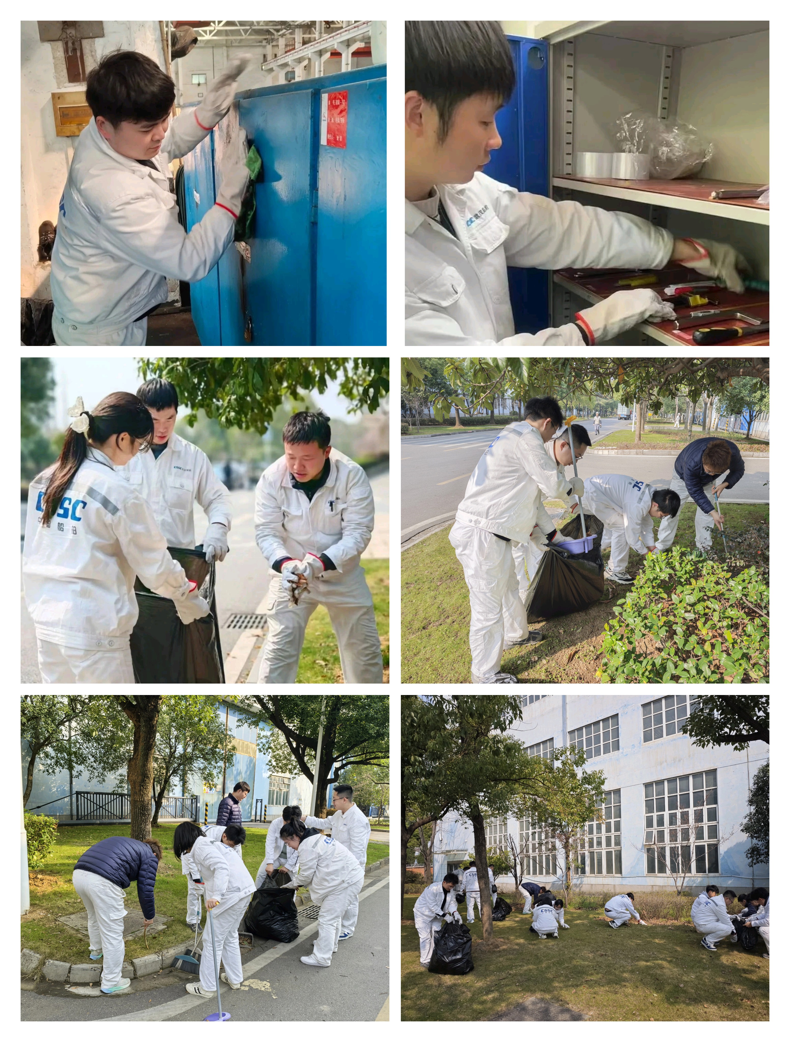 此次志愿服務活動以一流環境創建為主要內容,團員青年們積極響應、齊心協力,現場熱火朝天。各生產部門團員青年們對照“分類擺放、標識清晰、整潔有序”的標準,對部門工具柜的雜物和油污進行了全面清理,柜內的分隔區換上了新的橡皮套,柜門也涂上新油漆,所有工具都定置管理,確保工具使用規范高效。其他部門的團員青年們投身于公司主干道兩側草坪的環境美化工作中,他們對責任區域的枯枝落葉、石塊雜物進行清掃,經過大家的清潔打掃,公司環境煥然一新。
