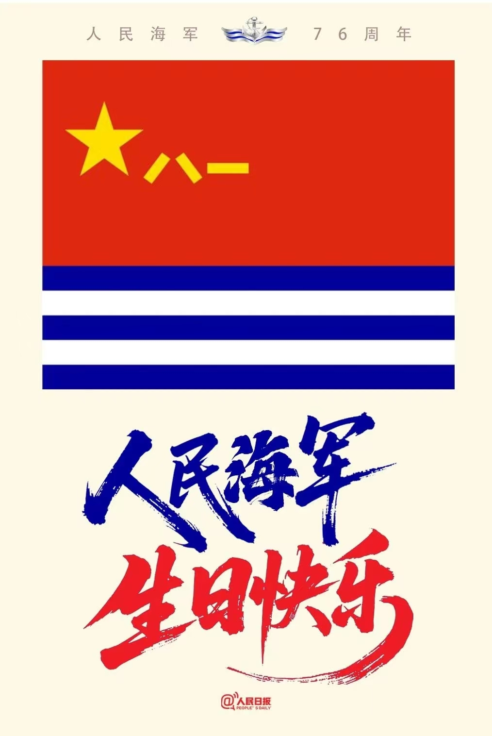今天(4月23日),是人民海軍成立76周年紀念日。76年來,人民海軍從小到大、由弱到強。從小艇到巨艦,從近岸到深藍,從單兵到體系,守衛祖國???,守護萬家燈火。
