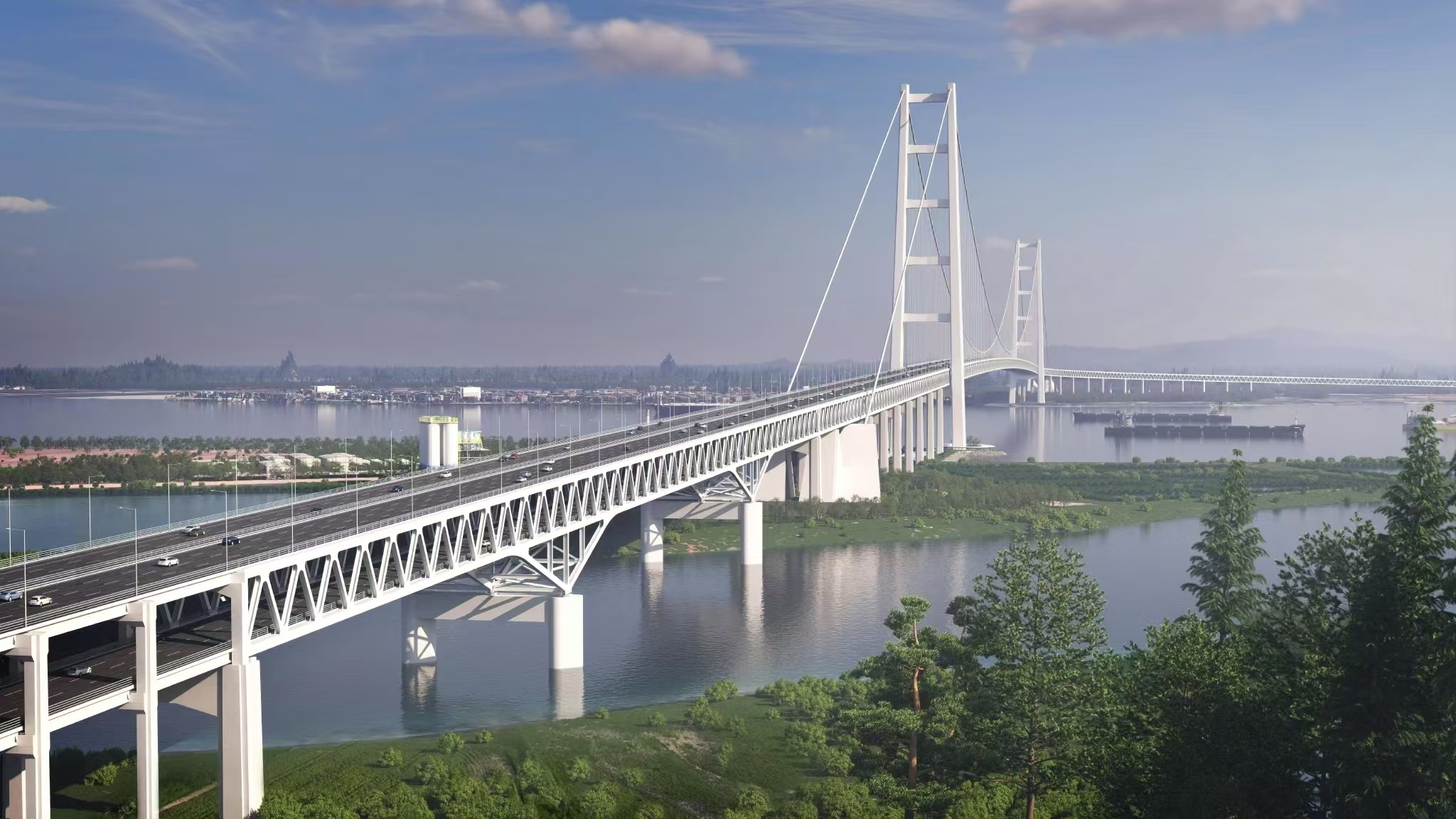 獅子洋大橋超大型索鞍、索夾制造工藝研究:廣東獅子洋大橋采用主跨2180米雙層鋼桁梁懸索橋的方案“一跨過江”,創(chuàng)下多項世界第一紀錄,主纜纜力達到數(shù)萬噸。武漢船機技術(shù)團隊深度參與該項目設(shè)計研究,在超大型索鞍制造工藝研究、主索鞍頂推性能研究、大直徑索夾研制等課題研究工作中進行技術(shù)攻關(guān),突破了索鞍高強度鋼材應(yīng)用、高強索鞍滑動副研制、特大直徑索夾制造及超大型鑄焊索鞍加工、焊接,有力支撐了這座世界級跨海通道的建設(shè)。
