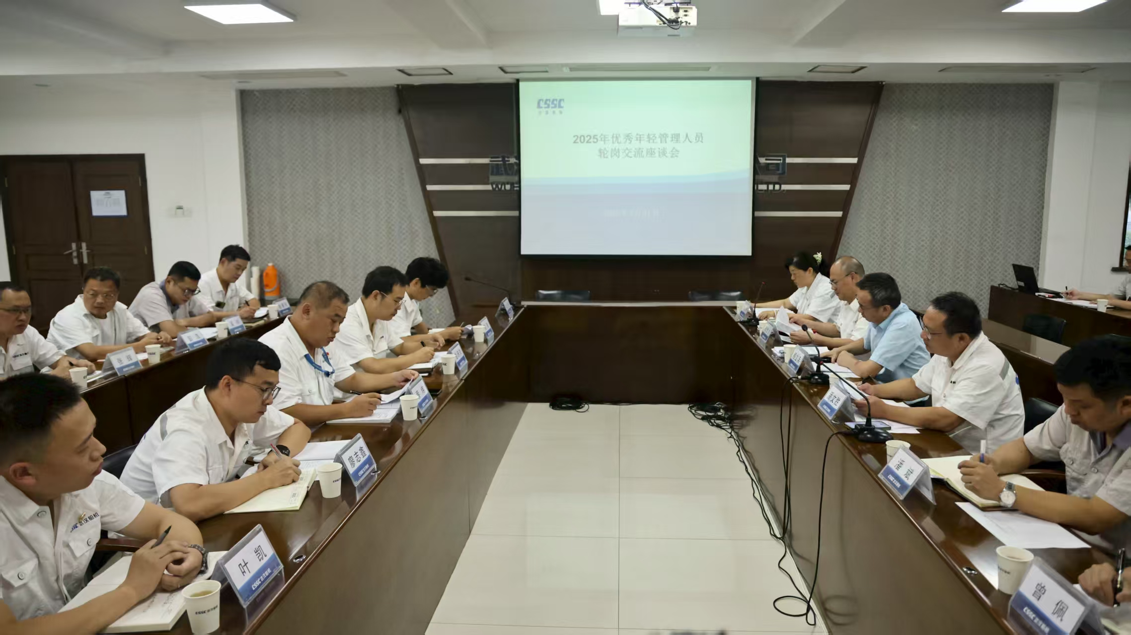 7月31日,中船集團武漢船機召開優秀年輕管理人員輪崗交流座談會。公司黨委副書記、總經理程立兵,黨委委員、副總經理潘文勝,黨委委員、總會計師陳世龍出席會議。