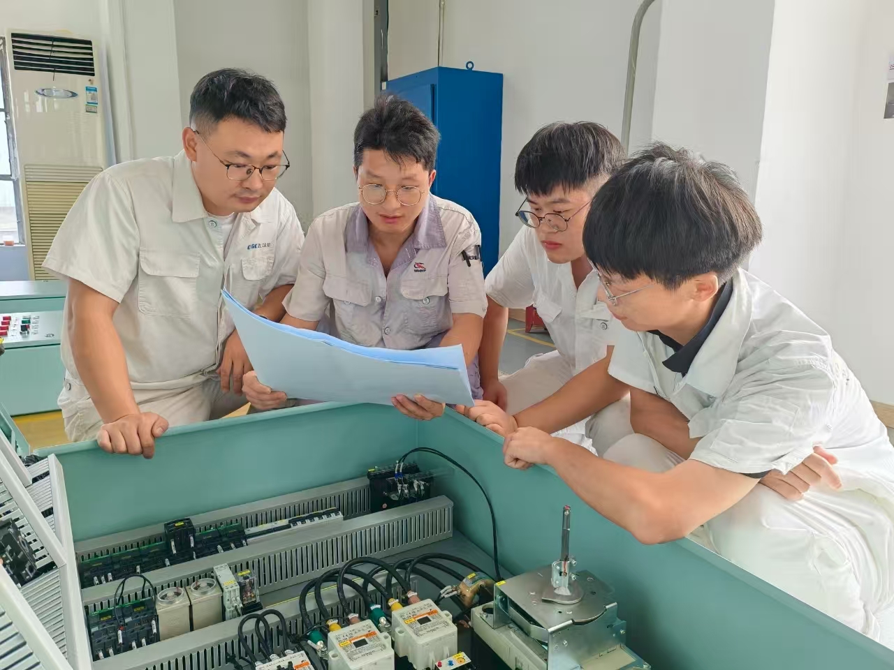 以青工問題為導向,細致策劃培養方案。今年初,針對青年電工較多、技能水平薄弱的特點,人力資源部聯合電氣制造部制定青年電工技能提升專項方案,通過骨干技能人員、電氣技術員理論授課與實操授課,并結合理論考試與實操考核檢驗效果,把培養方案落到實處,切實解決青年電工理論基礎不扎實、現場實操不規范等實際問題。